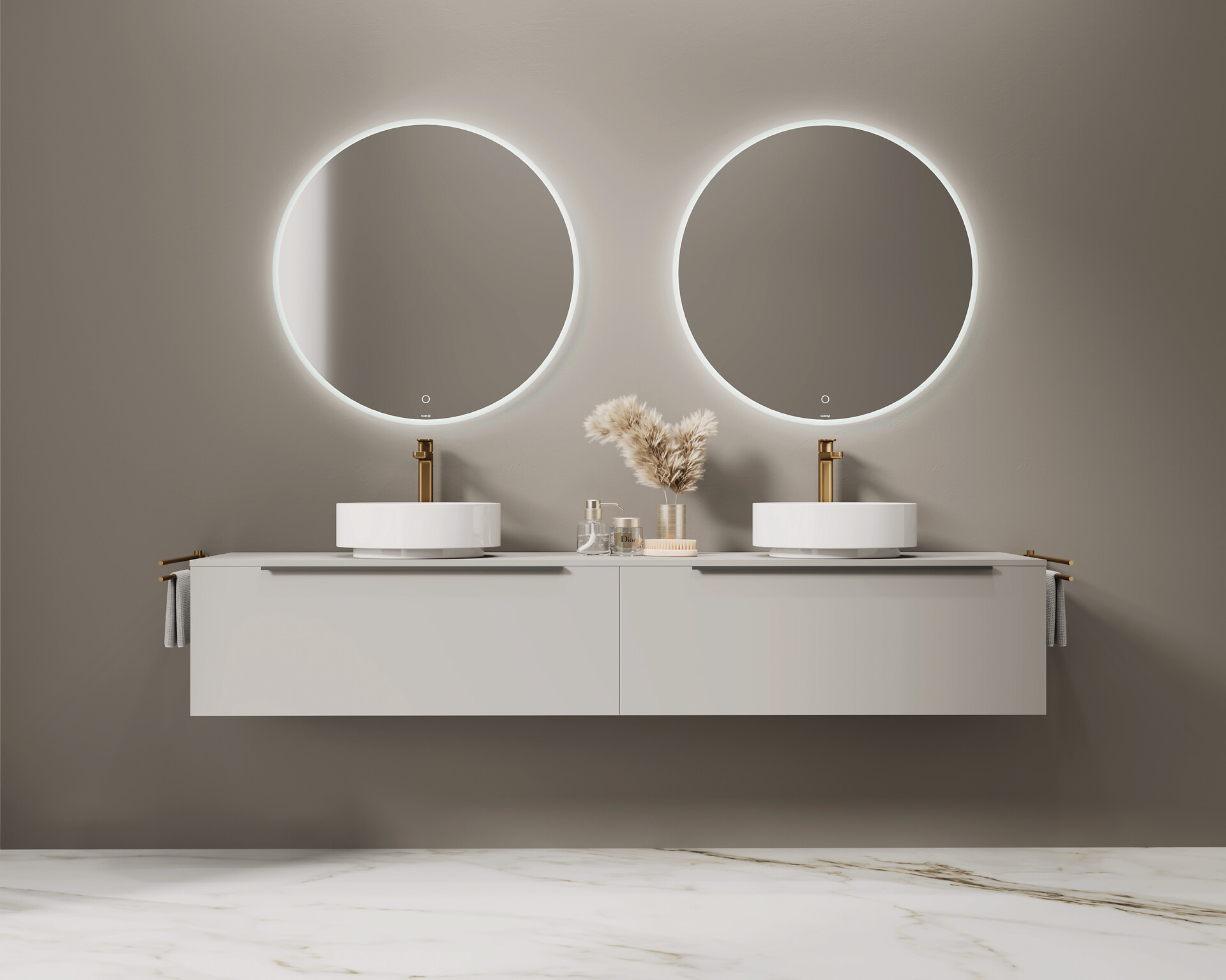 Die Spiegel der KLUDI-LUMA Serie überzeugen mit einem modernen, minimalistischen Design und innovativen Funktionen. Die integrierte Hintergrundbeleuchtung sorgt für sanftes, angenehmes Licht und schafft eine behagliche Atmosphäre. Dank der berührungslosen Aktivierung lässt sich die LED-Beleuchtung bequem per Touch-Switch steuern. Ein praktisches Element ist auch die Entfeuchtungsfunktion, die ein Beschlagen der Spiegelfläche verhindert und somit jederzeit klare Sicht garantiert.